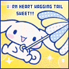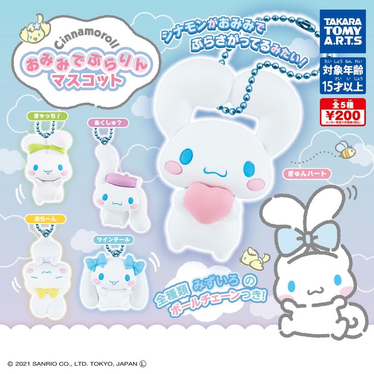 "Cinnamoroll is a character series created by Sanrio in two-thousand-and-one, with character designs from Miyuki Okumura. The main character, Cinnamoroll, is a white puppy with chubby and pink cheeks, long ears, blue eyes, and a tail that resembles a cinnamon roll. He starred in his own manga series, an anime movie, and various animation shorts. "